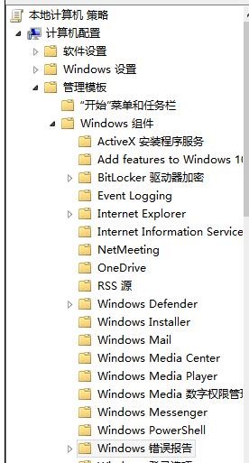在组策略左侧,依次打开计算机配置,管理模板,windows组件,windows错误报告