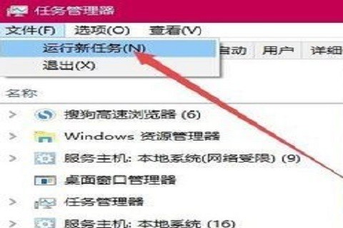 2、在打开的任务管理器窗口中,依次点击“文件-运行新任务”菜单项;