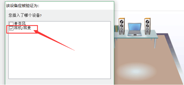 6、这时我们重新插入耳机的话,会出现一个弹窗,勾选"耳机/耳麦"前面的小方框即可出现声音。