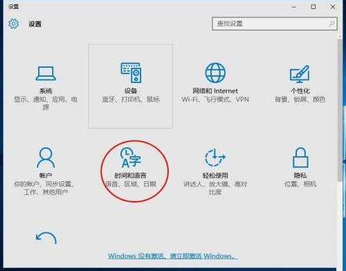 2、在设置中,点击【时间和语言(语言、区域、日期)】。如下图。