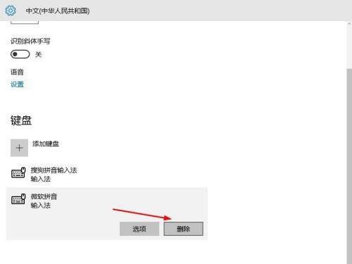 6、由于我已经安装了搜狗拼音输入法。我选择删除win10自带中文输入法。点击【微软拼音输入法】后的删除。
