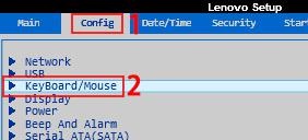 1、我们可以在开机时使用热键进入bios设置。找到config选项卡中的图示位置。