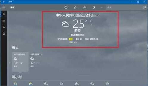 5、返回天气首页之后,可以看到已经切换成本地城市天气预报了。