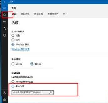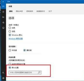 3、切换到天气设置选项后,在启动位置下方的默认位置中输入本地城市名称。
