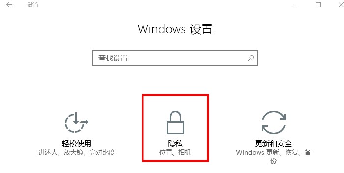 2、接着在打开的【windows设置】界面中点击【隐私】