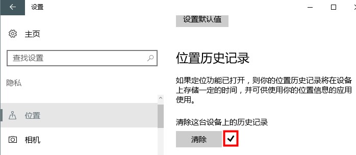 5、最后位置历史记录清理完成后可以看到旁边有个小对号