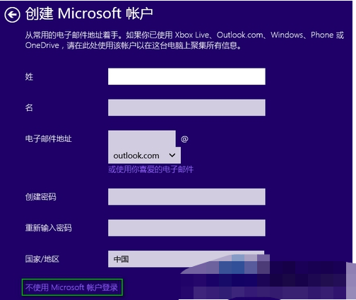 2、在Outlook电子邮件注册界面上,点击下面“不应用Microsoft账户登录”。