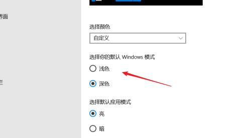 3、然后再从右侧的界面中找到【选择你的默认windows模式】,将其设置成【浅色】即可
