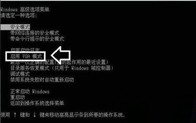 8、如果是重启电脑之后显示:超出工作频率范围的提示。那么第一时间长按开机键,关闭电脑,再按开机键,重新启动,马上按F8键,使用上下键选择:启用VGA模式(通常在Windows XP 操作系统的启动管理菜单中才会有)即可。