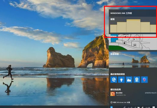 2、接着在任务栏点击多出的【Window Ink工作区】图标,在打开的Window Ink工作区界面中选择【便签】