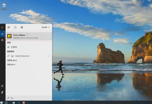 3、另外我们还可以点击任务栏左下角的搜索框或小娜,在搜索框中输入【note】或者是【sticky notes】就可以看到【便签】了