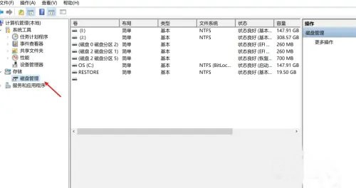 2、在管理界面中,打开磁盘管理选项。