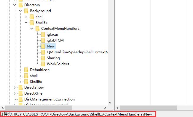 2、进入注册表编辑后,依次点击左侧中的"HKEY_CLASSES_ROOTDirectoryBackgroundshellexContextMenuHandlers"。
