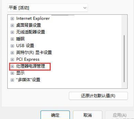 6、弹出对话框后,点击展开“处理器电源管理”;