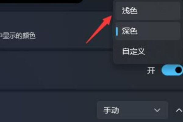 3、接着将选择模式改为“浅色”;