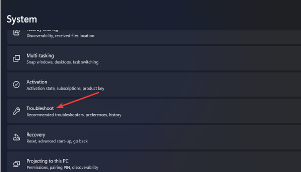 2、让将栏目向下滚动系统选项卡,找到疑难解答选项进行点击打开。