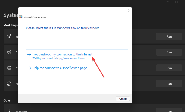 5、再出现的窗口中点击解决我的Internet连接问题选项。