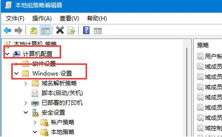 3、对于打开的本地组策略编辑器中,在左侧选择计算机配置,然后到其中的“Windows设置”。
