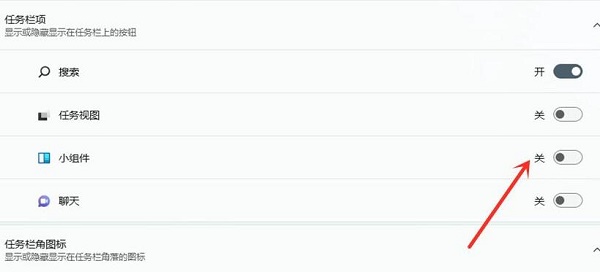 4、随后将“小组件”关闭即可,就不会弹出东西了。