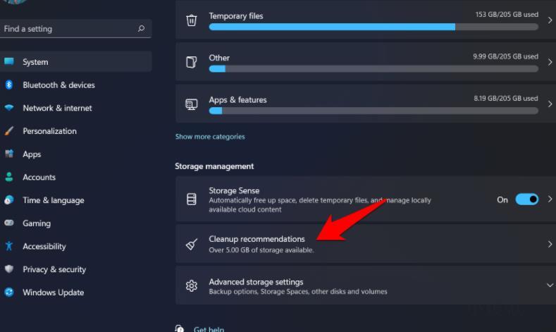 3、然后单击Storage Sense以访问其菜单。