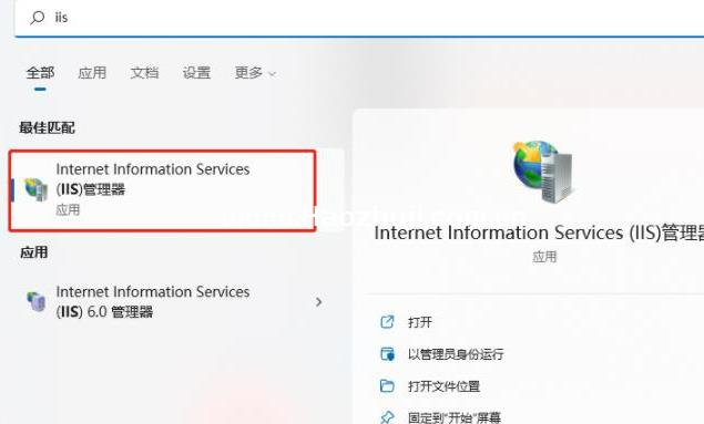 5、接下来 在开始栏中搜索 IIS 并点击进入IIS管理器。