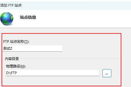 7、物理路径记得填刚刚创建的Ftp根目录文件夹路径。