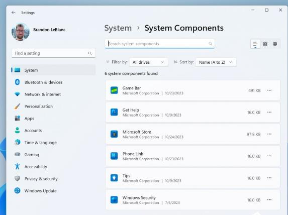 当前在“设置”>“应用程序”>“已安装的应用程序”页面中列出的系统组件已移至“ 设置”>“系统”>“系统组件”下的自己的页面。