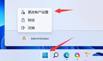 1、点击开开始菜单,点击账户名,进入更改账户设置。
