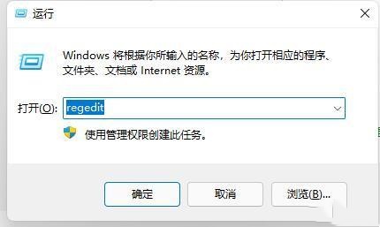 1、首先按下win+r快捷键,在其中输入regedit回车确定。