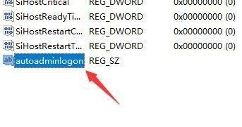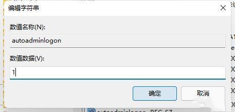 4、再将这个字符串值重命名为autoadminlogon并双击打开。