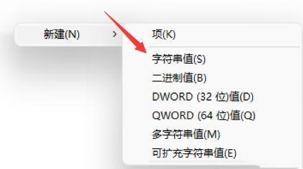 3、然后右键右边空白处,选择新建一个字符串值。