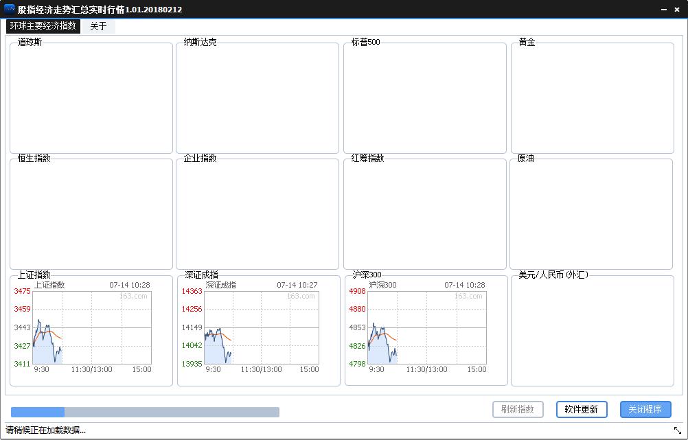 股指经济走势汇总实时行情软件是一款简单的股票行情走势软件,能够实时显示原油黄金美元人民币等各项指数行情,而且你可以手动刷新指数,软件整体界面清爽,没有任何多余的项目,让你可以随时查看,功能全面,简单易用,使用后可以帮助用户更轻松便捷的查看股票行情走势。