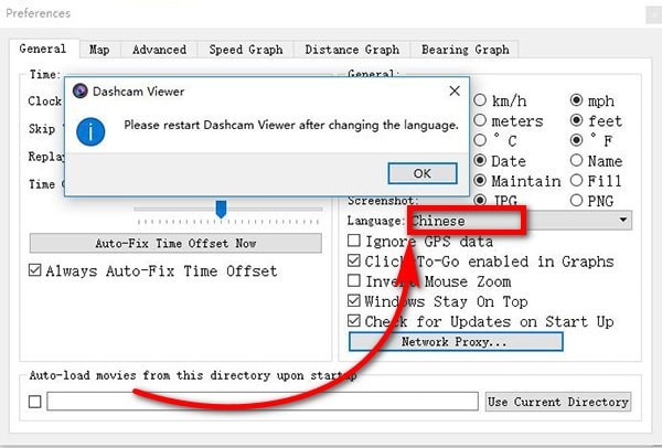 3.在language项选择“Chinese”然后重启即可切换中文界面。