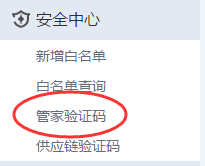 验证码:登录管家会员后台后即可在左侧【安全中心】查看。