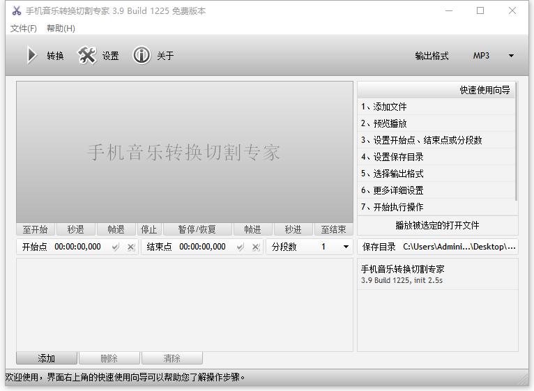 手机音乐转换切割专家是一款基于FFmpeg的转换处理工具,支持音乐格式之间转换、切割,同时支持所有视频转换或切割到音乐格式等功能。标定支持的转换输出格式:MP3|AAC|M4A|WMA|OGG|FLAC|AMR|MP2|AC3|WAV。