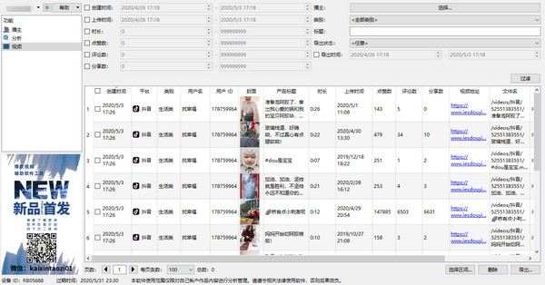短视频内容分析采集管理软件是一款视频内容分析软件,可以采集视频并对采集的视频数据信息进行数据化管理,并对采集到的视频内容进行分析和内容管理。