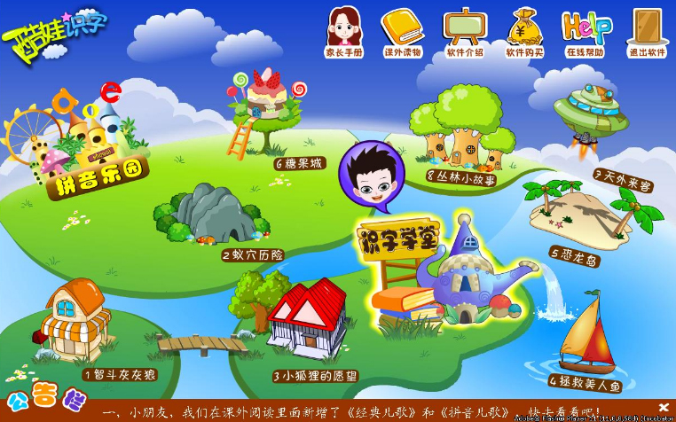 软件是真正的幼儿识字互动动画,让孩子在与酷娃一起历险的同时掌握知识,具有超强的可玩性和吸引力。
