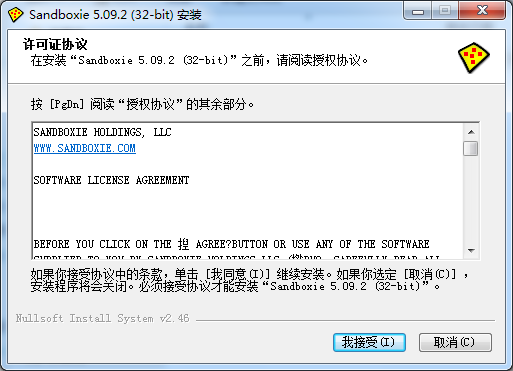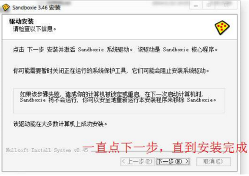 1、到本站下载安装sandboxie,打开安装程序,点击下一步继续安装;