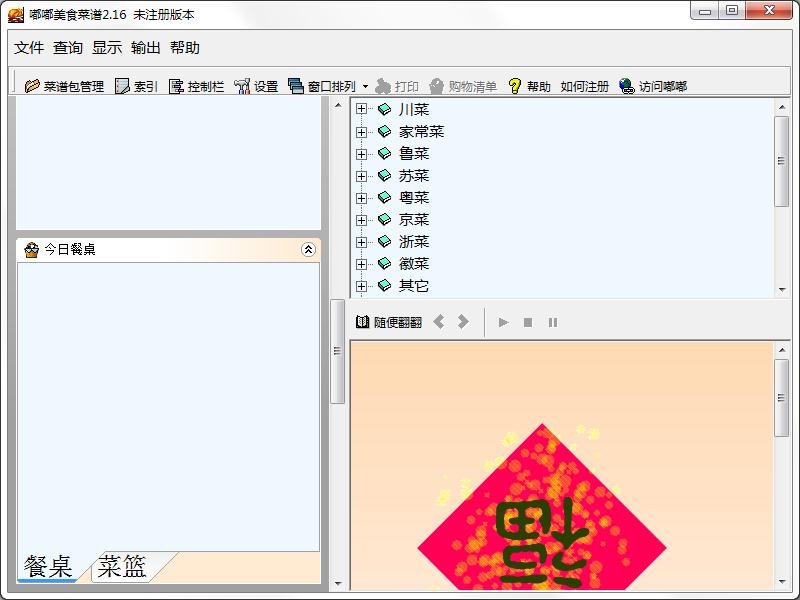 目前的版本提供多种美食菜谱供下载,导入,包括各大菜系的名菜,家庭简单美食,营养美食,饮料调制方法,点心做法等。