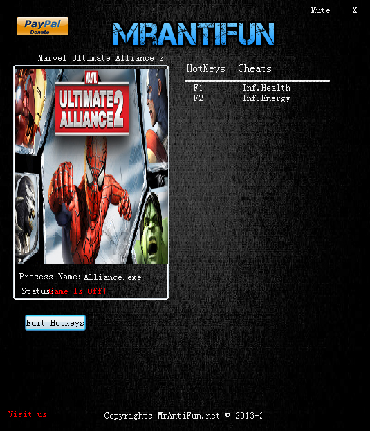 漫画英雄终极联盟2修改器是一款针对《漫画英雄:终极联盟2》的作弊器。这款漫画英雄终极联盟2修改器可进行无限生命和无限能量的操作辅助,让你更轻松玩游戏!