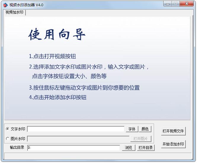 视频水印添加器是一款既简单又好用的视频加水印软件,使用该软件,允许你在视频嵌入文本、图像。视频水印添加器具有操作简单,界面友好,添加水印速度快的特点,你只要点击几下鼠标就可以完成,完全傻瓜式的操作,不需要任何专业基础。