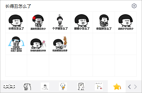 长得丑怎么了表情包是一款非常搞笑的QQ表情包,表情包专为那些自认为长得丑的小伙伴打造,专门用于怼那些嫌弃你说你丑的人,感兴趣的小伙伴快来下载试试!