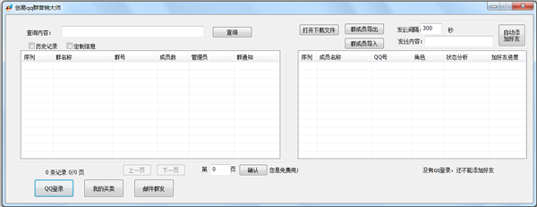 创易QQ群营销大师是一个全自动QQ营销软件,它可以全自动登入QQ,并自动加好友,进行QQ群群发,qq好友群发等功能,提高营销效率。