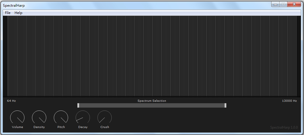 SpectralHarp是一款可以使用调节字符串来弹奏声谱的软件,让你可以通过不同的方式来弹奏声谱,这取决于你如何配置那些字符串。你可以选择你想要的声音频谱的部分,以及从那部分显示多少个字符串。还有一些额外的旋钮,可以让你进一步修改声音。
