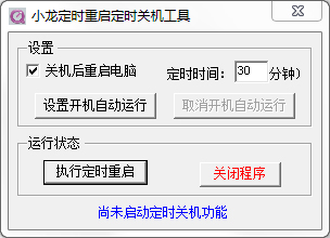 小龙定时重启定时关机工具是一款不错的关机定时管理的软件的,简单实用,主要是方便,欢迎下载!