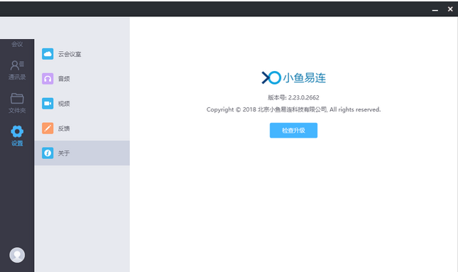 关于:显示小鱼易连PC客户端的版本信息、版权信息,以及检查更新版本。