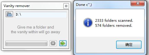 Folder Vanity Remover 扫描后会直接删除,没有确认的机会,不过你可以在回收站里找到被删除的文件夹。