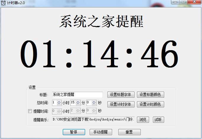 3、可以自定义设置剩余几小时或几分钟提醒以及提醒音乐,也可以手动提醒。