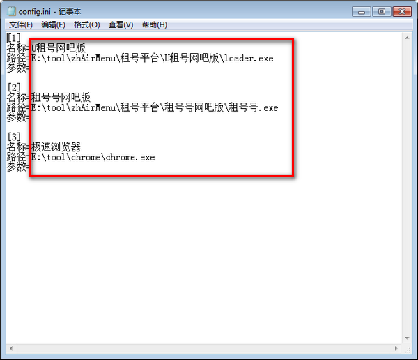 1、下载软件后打开配置文件,复制需要建立快捷键的软件的地址输入保存;