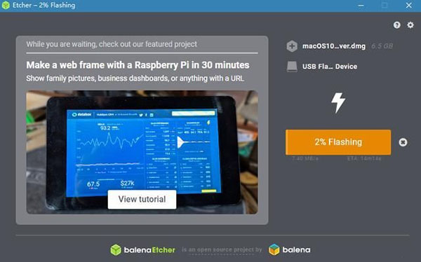 Etcher能够支持用户将系统映像快速各类SD卡与移动驱动器上。